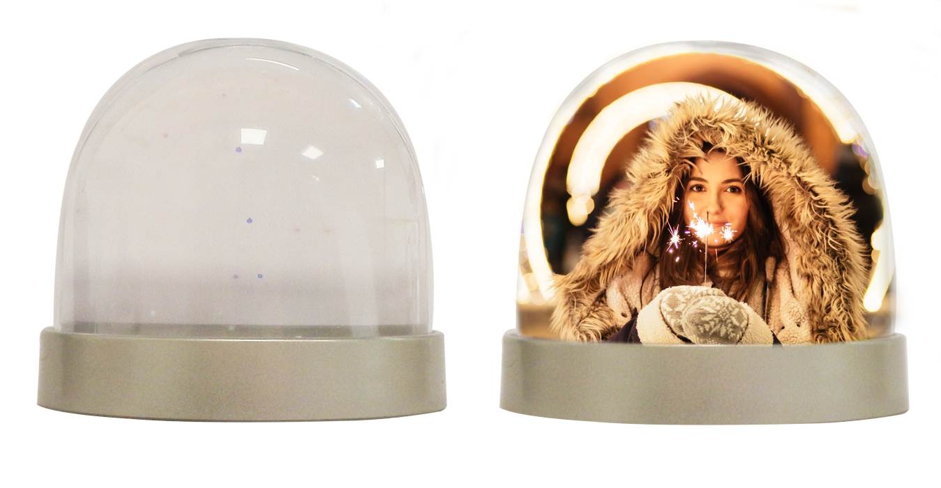 These snow and glitter domes are shaped as the name implies, are filled with water, 'snow' and glitter, and feature a fixed base with a hinged opening for your specially cut insert.