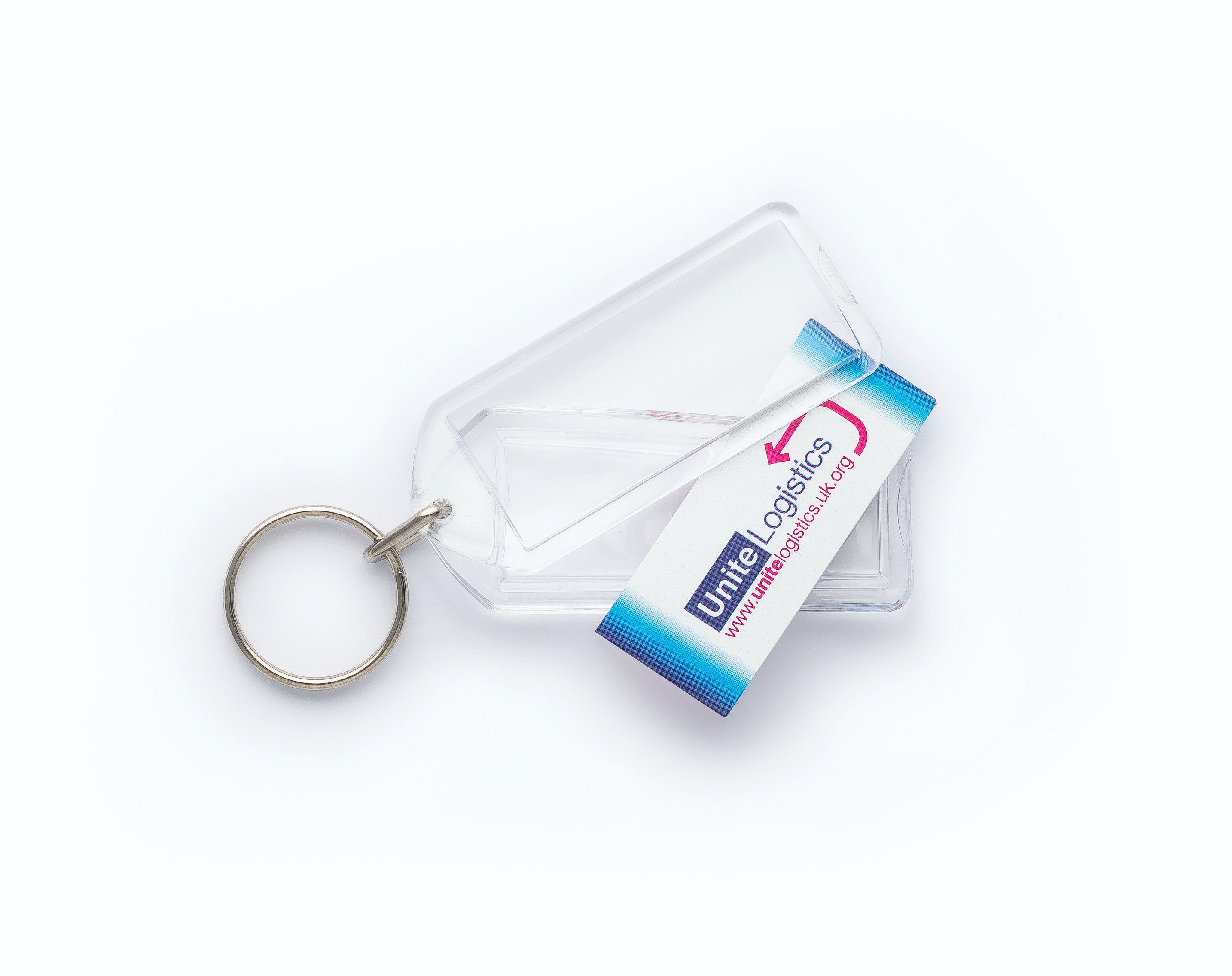 This keyring differs from most other keyrings in our range in that it doesn't use a window to slot the insert into place - there are two halves to the acrylic design which pivot off the split ring connector and click into place once you've popped in your insert.
