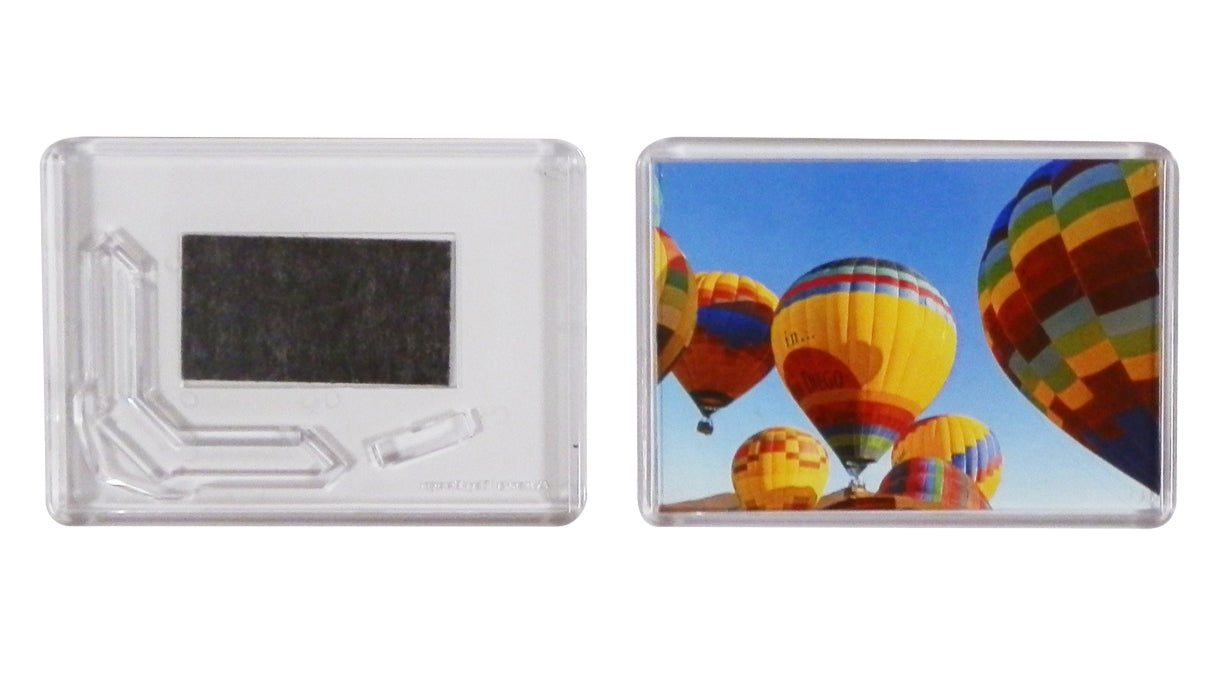 This NEW, larger, fridge magnet takes eye catching 51x73 mm inserts and combines both a fridge magnet and picture frame.