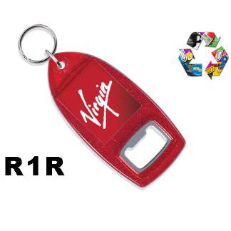 The Eco version of the R1 Acrylic Bottle Opener keyring is made from recycled waste plastics.